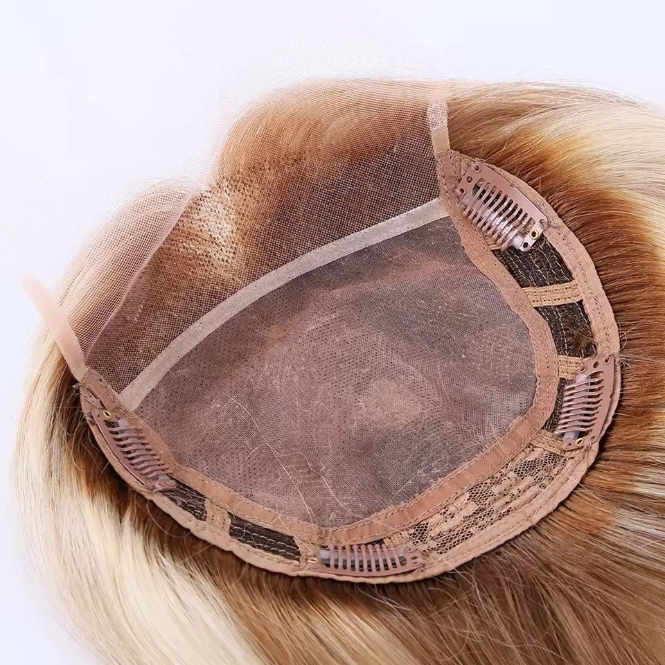 The wefted back and sides add structure and fullness, making this topper particularly suitable for women who require enhanced volume or a more secure fit without sacrificing comfort. This combination is considered a high-end, special-order construction, typically produced only through custom requests rather than mass production.